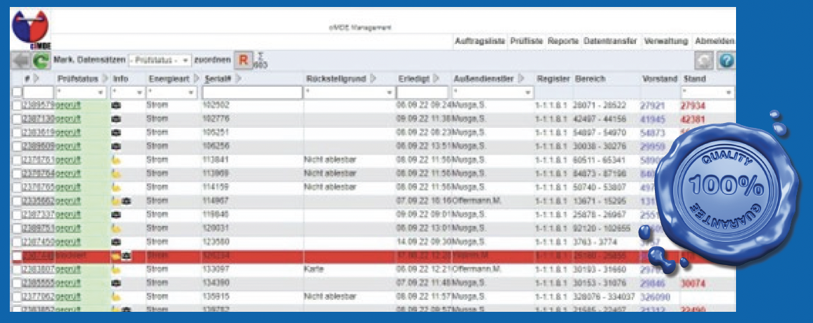 Unsere Qualitätssicherung beginnt bei der Auswahl unseres Personals und reicht bis zur gesicherten Dokumentation jeder Ablesung.